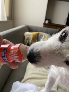 おとうさんの飲み終えたヤクルトの、しずくほどもない空ボトルを、なめさせてもらいました、と。