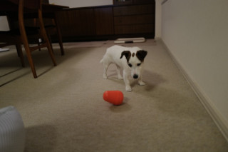 おもちゃに穴が空いてるので、転がしているとおやつが出てくる。