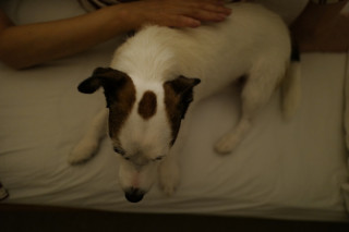 おかあさんが寝ているところに、さっと飛び乗って、じゃまにならないように静かに寄り添います。