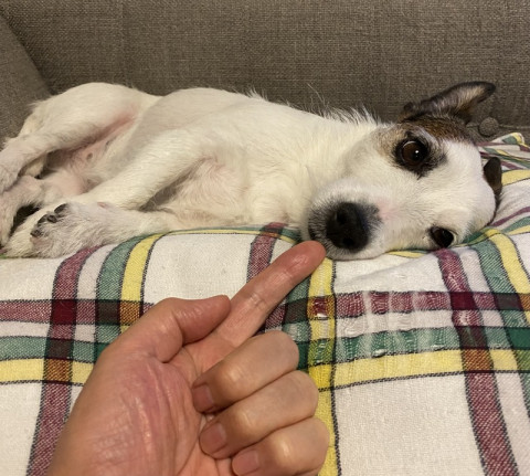 黒い鼻がかわいいから、ツンツンっとしようと思ったら、起きちゃったのでした。