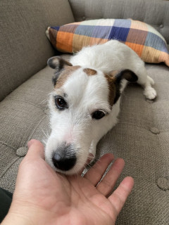 朝のあいさつは、口なめですが、昼間は手なめをします。