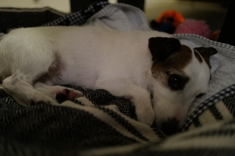 おやつを食べ終えて、ただ、マイベッドに横たわっただけ。
