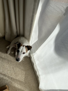 遮光カーテンの向こうで、おひさまにあたるのが好き。
