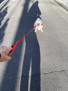 よく本気で引っ張りっこしてる犬と人がいますが、うちの場合はちょっと力を入れるだけで、しぶしぶ動き出してくれます。