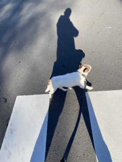 たった2人のメンバーですが、しかも人と犬ですが、横断歩道を渡るとき、ちょっと、アビーロードを思い出します。