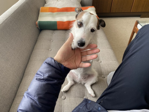 おとうさんは、それを防御して、手だけをなめさせる。