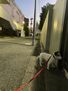散歩の好きでもない犬がいて、でも外に出るのは好きなので、しぶしぶ歩いていました。