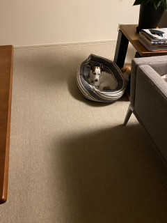 ブイちゃんは留守番です、と言うと、ちゃんとここにおさまるんです。