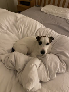 ブイコちゃんは、おとうさんが来るまではおとうさんのベッドにいます。
