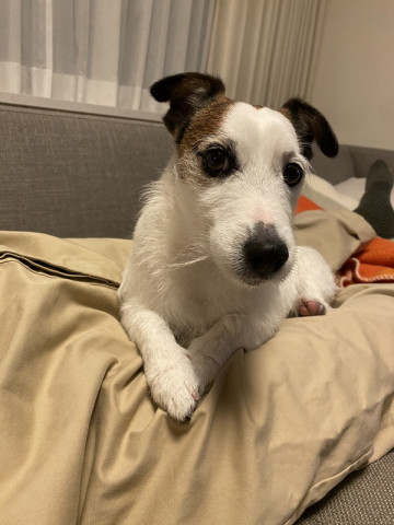 散歩から戻って、足を洗って、まだ湿り気が残ってるときに、よくおとうさんに乗っかります。