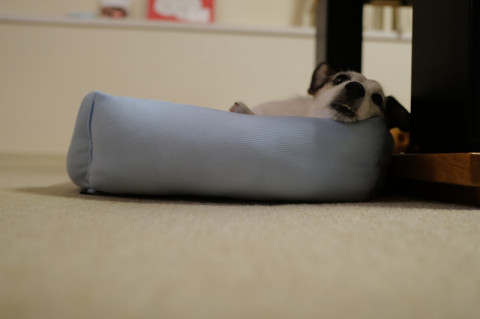毎度おなじみの場所で、おなじみの横たわりなのですが、この角度から写真を撮ると、ちょっと顔がちがって見えます。