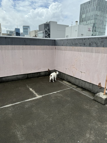 散歩も暑いのも嫌いなはずなのに、おとうさんの日光浴に、ドアをすり抜けてついて来ました。