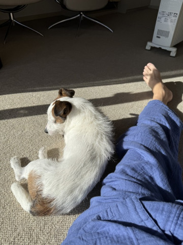 起きてすぐにカーテン開けて、ひなたに座ると、すぐに、ブイコが駆けつけます。