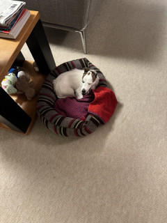 夜中、さっさと寝室に行くときと、おとうさんにつきあって、居間にずっといるときと、2種類あります。
