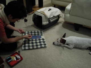 テキスト差し替え 写真だけ同じで、テキスト差し替えます。 京都に向かっている 「人間のおかあさん」からのメールです。 “ 無事に新幹線のれましたが、ものすごくあせった! 家のエレベーター乗ろうとした瞬間、バキッっという音がしてブイヨン移動かごが壊れ、ブイヨンが飛び出しちゃったの! あと35分しか時間がないのに。 で、あわてて布の紐で応急処置して駅に向かいました。いや〜びっくりした。 ブイヨンの体重増加のせいでしょか? まっ、カゴも3年使ってるしねー” 2006/06/21 11:15 |