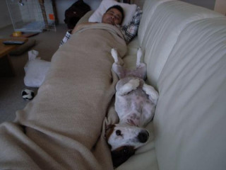 「寝てるバカおやじとバカ犬」のシリーズのなかでも、バカ度がきわめて高い逸品です。