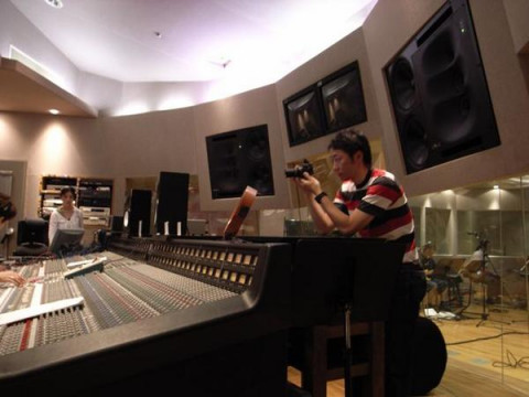 ゆえあって、レコーディングスタジオで、写真を撮っている永田さん。