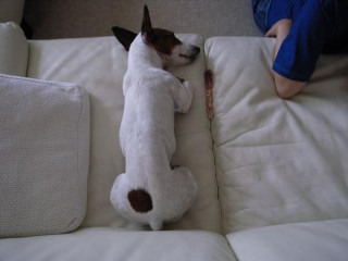 人間のおかあさんが、テレビを見ているので、そばに行って、くつろいでみた。