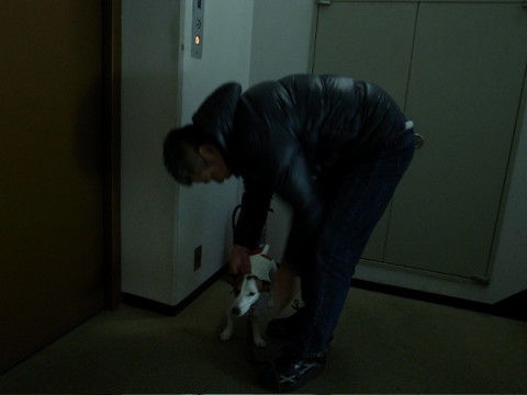 このところ、犬は、よく留守番をしてえらいので、おとうさんが夜の「おまけ散歩」をしてくれることになりました。