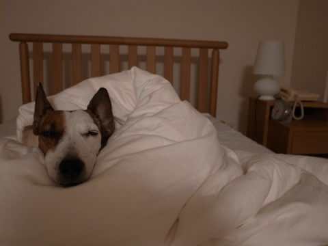 ボール投げして、散歩をして、ごはんを食べたあとは、静かな場所で長い昼寝をします。
