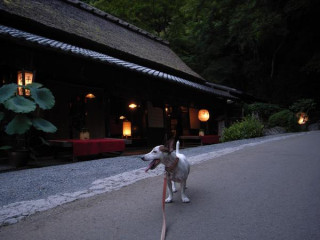 鮎料理で有名な平野屋の前で、