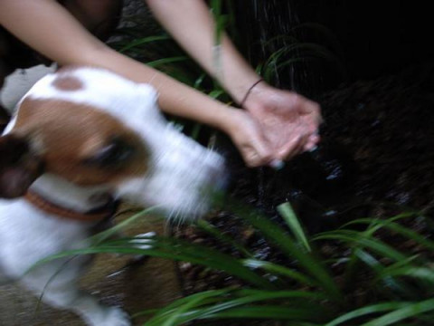 散歩から帰って来て、ほれ水を飲め、水を飲め。