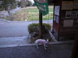 おとうさんが買い物してるので、犬は静かに待っています。