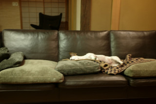 おねえさんが、まだ二階にいるかと思って、階段の下で待っていたんだけど、なかなかこなかった。