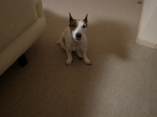 あくびをやめた犬。