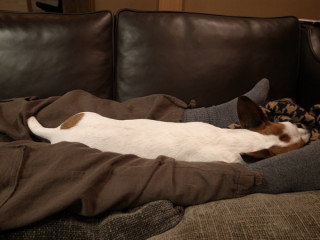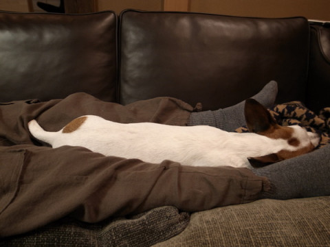 今日は旅もしてきたし、そのあといっぱい散歩もしたし、犬なりにくたびれました。