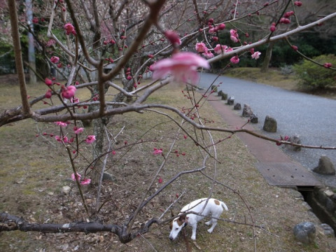 犬は東京にいるのですが、この、京都の梅の木の下にいる写真を、おとうさんが送っただけです。