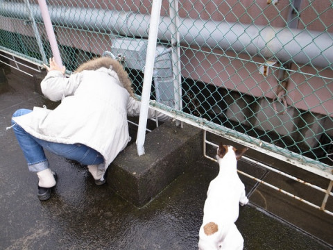 でも、さっそく柵の向こうに転がってっちゃって‥‥。