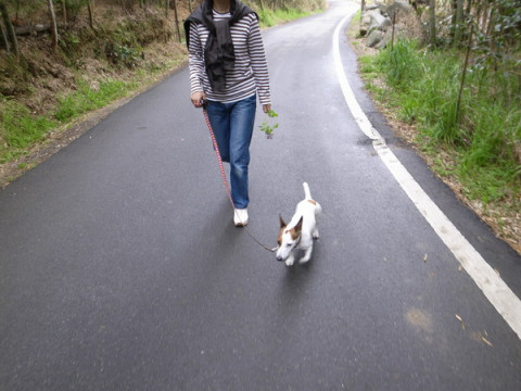 人間のおかあさんとの散歩は、ちょっと「おんなのこ」な感じ。