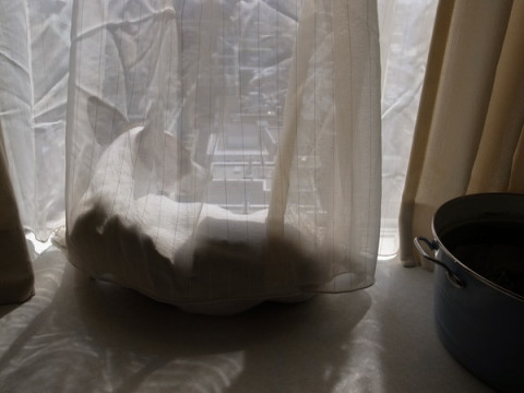 カーテンの折りじわについては、気にしないでくださいと、人間のおかあさんが言ってます。