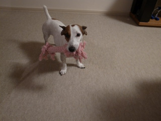 犬は、もう忘れているのですが、これは「ひっぱりっこするおもちゃ」