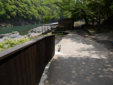おとうさんにさそわれて、舟で行く旅館に、歩いて行った。