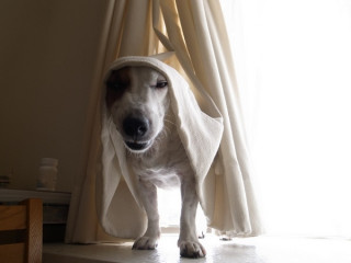 お日さまに当たり過ぎて、すっかりゆだっちゃって、こわい顔になっちゃった犬。