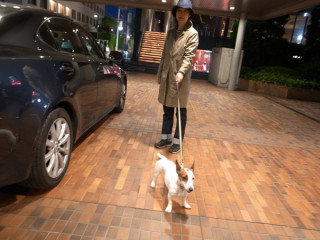 夜の散歩に向う犬と、人間のおかあさんは、仕事帰りのおとうさんに出合ったのであった。