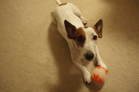 犬は、こうしてボールをね、持って待ってますけど、すぐじゃなくていいんですよ。
