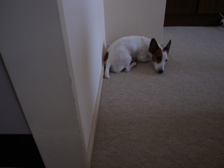 おとうさんにくっついてるとき、人間のおかあさんをたよるとき、だれにも会わない奥の部屋、ソファ、犬の家、廊下‥‥。