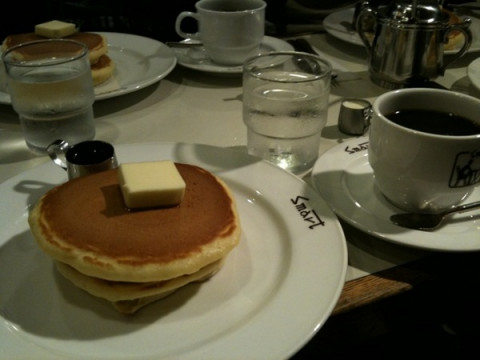 おとうさんは、いま、ホットケーキを食べました。