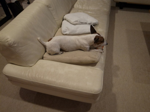 ボールで遊んでいても、犬は、なるべくテレビから目を離さないようにしています。