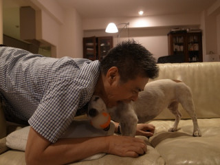 そうすると、犬は、おとうさんの身体の下に潜って、