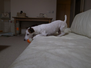 またボールを落としそうになって、あわててがぶっとくわえる。