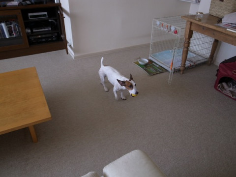 ちっちのシートをとりかえてもらって、おやつをひとつぶもらって、お出かけ準備はおわります。