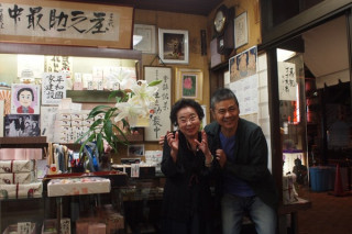 まんなかのかわいい女性は、庄之助最中の美人女将です。