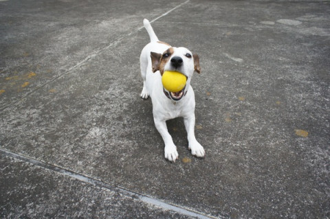 九州のほうの温泉に行ってる人間のおかあさんに報告するとしたら、いまの犬は「げんき度63」くらいかな。