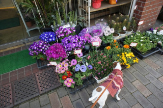 桜のほうも、ちょっとずつその気になってるけど、花屋さんの店先も、ずいぶん春めいてきています。