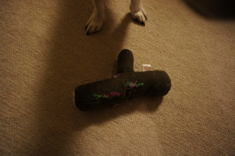 そのたびに、縫い糸の色を変えているので、犬が噛んで壊すほど、これは、かわいくなるんだそうです。