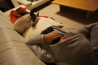 おとうさんは、このところ半月ほどのおいそがしさで、犬はこの日のあたらしい体験で、けっこうつかれたらしく、知らないうちに眠っていました。